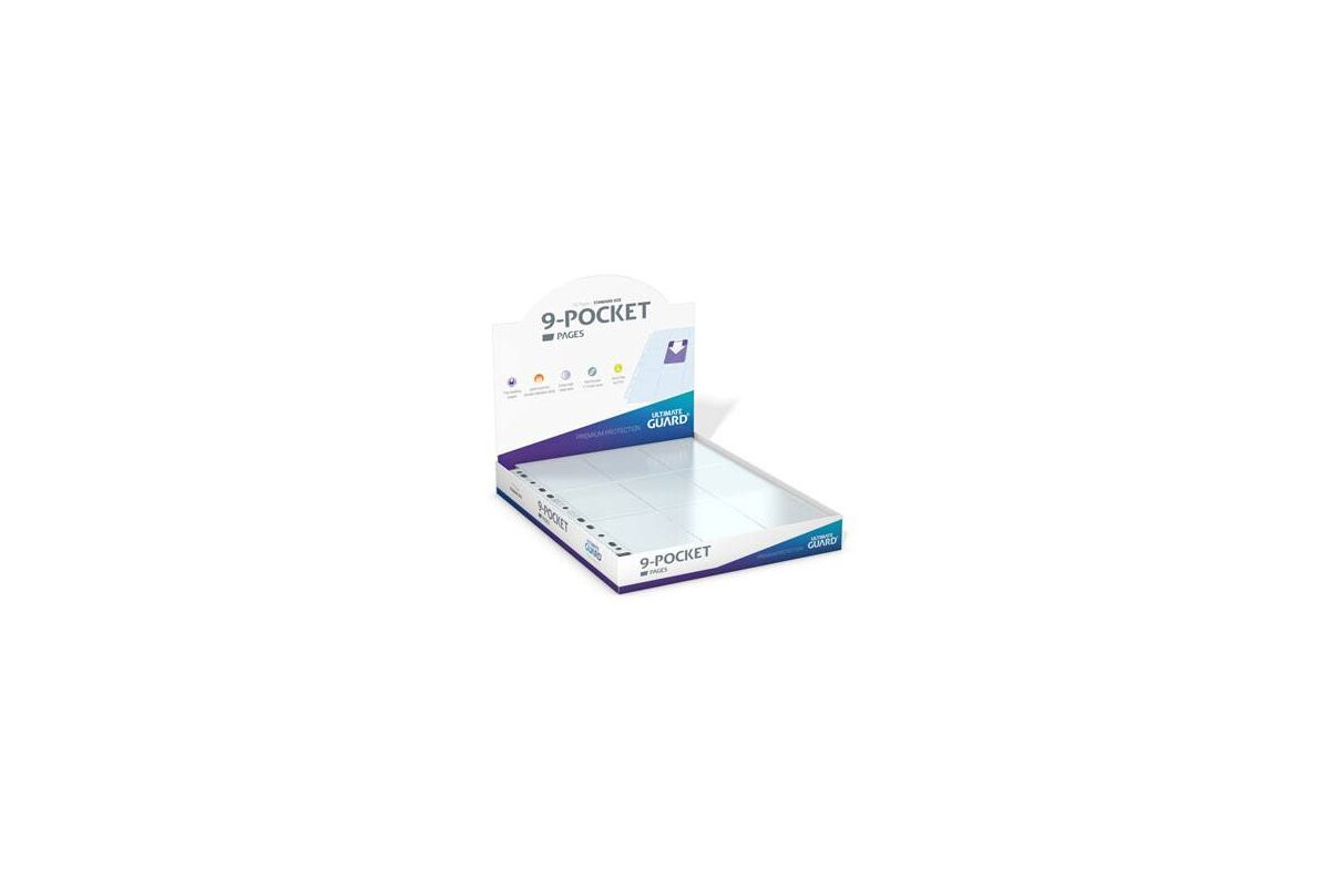 Ultimate Guard's 9-Pocket Pages Top-Loading are classic, high-quality pocket pages designed for D-ring binders. These flexible binder pages offer exceptional clarity, a reinforced 11-hole strip, and nine top-loading pockets for double-sleeved cards*. Suitable for all standard- and Japanese-sized TCGs, including Magic: The Gathering, Lorcana, One Piece, Flesh and Blood, Yu-Gi-Oh!, Riftbound, or Pokémon.