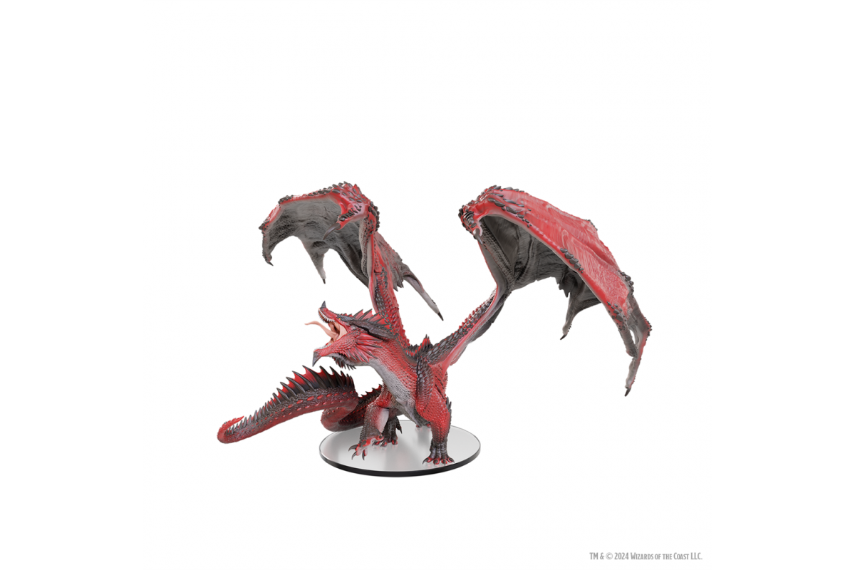 Sculpted in its newest form, the Huge-sized D&D Icons of the Realms: Adult Red Dragon Tyrant pre-painted miniature sits on a 75mm base, making it perfect for your next encounter. With an 8-inch wingspan, this quintessential dragon will dominate your table and collection.