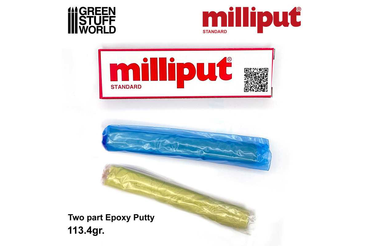 Milliput putty is a versatile and popular epoxy putty used by modelers, sculptors, and DIY enthusiasts for various applications. It is a two-part putty made up of two separate bars, one of which contains a hardener, and the other is a resin. Upon mixing equal parts of both bars, a chemical reaction is initiated, which gradually hardens the material into a strong, durable, and resistant mass in about 90 minutes.