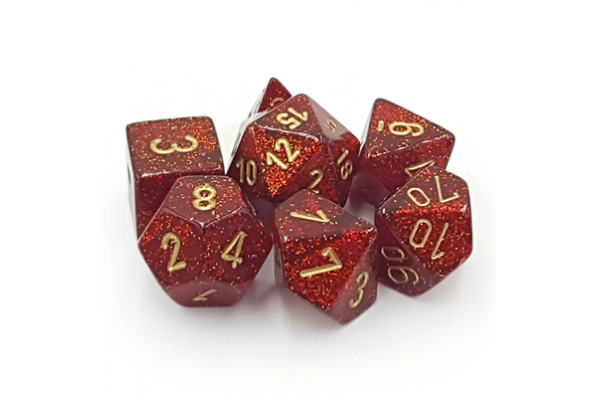 Chessex Glitter Polyhedral 7-Die Set - Ruby w/gold
