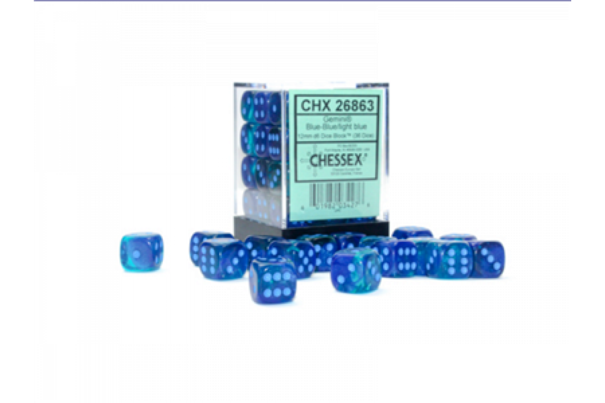 Gemini 12mm d6 Blue-Blue/light blue Luminary Dice Block (36 dice)