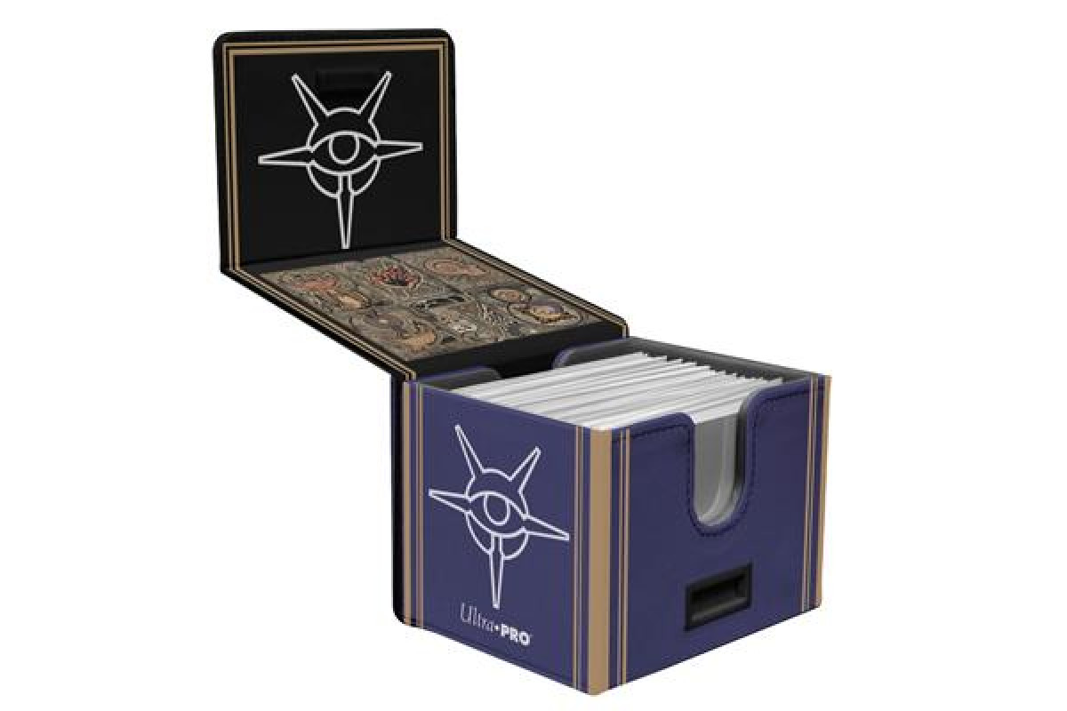 The Elder Scrolls - Mages Guild Alcove® Edge Deck Box® features historic Mages Guild iconography printed onto a cloth-like exterior with interior printing of the six schools of magic, and has dual thumb notches for easy open access to your deck. Store and protect up to 100 standard size trading cards double-sleeved in Ultra PRO Deck Protector® sleeves. The interior features a stylized pattern. Strong magnetic closure with a locking mechanism keeps your cards securely stored when not in use.