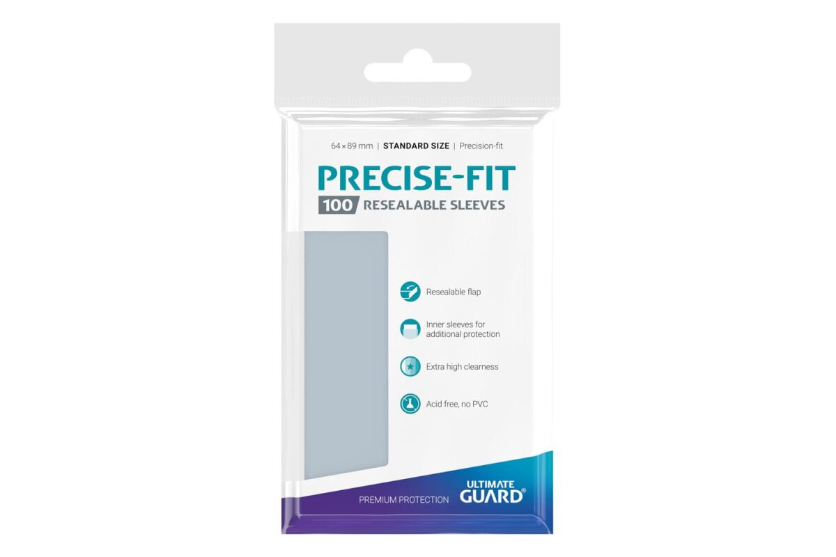 Ultimate Guard’s Precise-Fit Sleeves with a resealable flap offer a perfect solution for extra card protection. These inner sleeves are made for double-sleeving and ensure a consistent fit for standard-sized trading cards. The resealable 25 mm flap protects your cards during transport and storage while maintaining full visibility through the ultra-clear polypropylene.