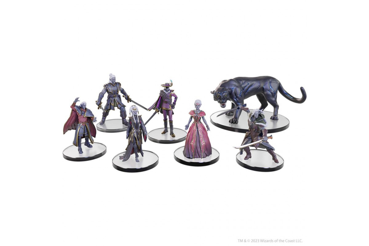 This set includes the dual scimitar-wielding drow ranger, Drizzt Do'Urden, and his faithful panther companion, Guenhwyvar. These two are joined by Drizzt's father and mentor, Zaknafein Do'Urden, and Drizzt's mother and powerful high priestess of Lolth, Malice Do'Urden.