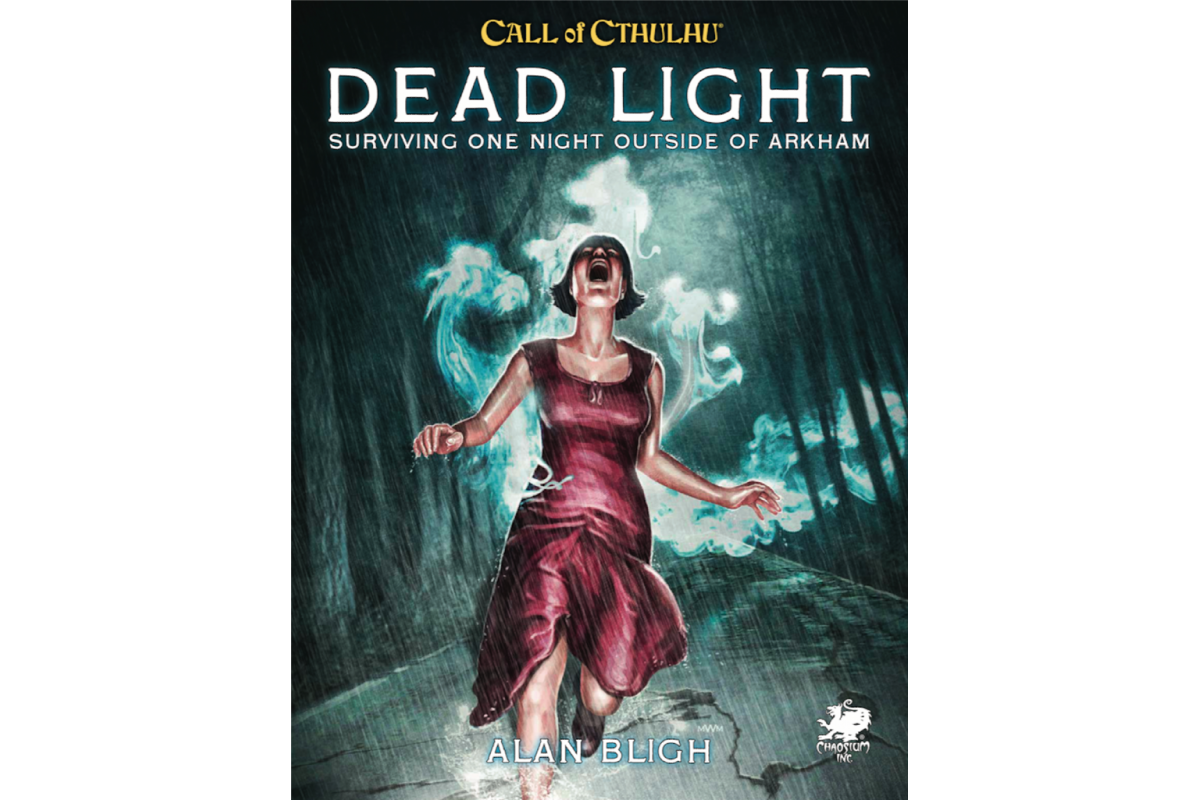 Dead Light and Other Dark Turns contains two scenarios for Call of Cthulhu 7th Edition dealing with the theme of roadside adventure, along with six story seeds for the Keeper to expand and develop. In the classic Dead Light scenario, now revised, a chance encounter with a distressed young woman leads the investigators into the hideous aftermath of a crime gone terribly wrong. While in the brand new Saturnine Chalice scenario, seeking help from a nearby homeowner after their vehicle runs out of gas traps the investigators in a house where nothing is quite what it seems.