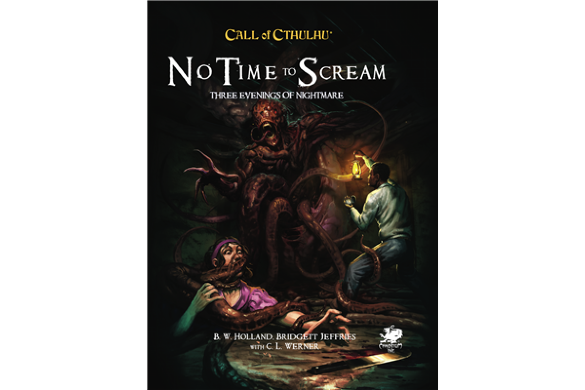 No Time to Scream contains three short-play scenarios for the Call of Cthulhu roleplaying game.