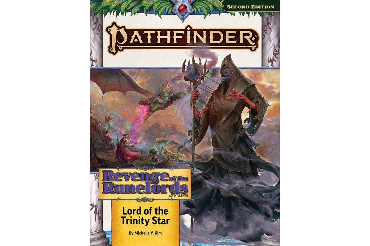 Lord of the Trinity Star is a Pathfinder adventure for four mythic 12th-level characters. This adventure begins the Revenge of the Runelords Adventure Path, a three-part monthly campaign in which a group of mythic adventurers face the Runelords—some of the most powerful and legendary foes in Pathfinder's history, concluding an epic story nearly 2 decades in the telling. This adventure also includes information about Nocticula (goddess of art, midnight, and exiles), new and powerful magic items to claim, and several new monsters to threaten mythic heroes!