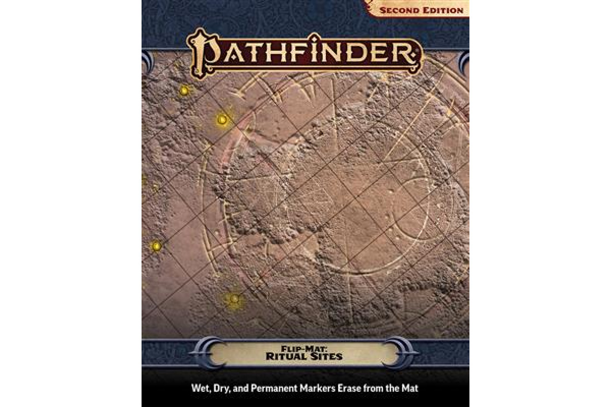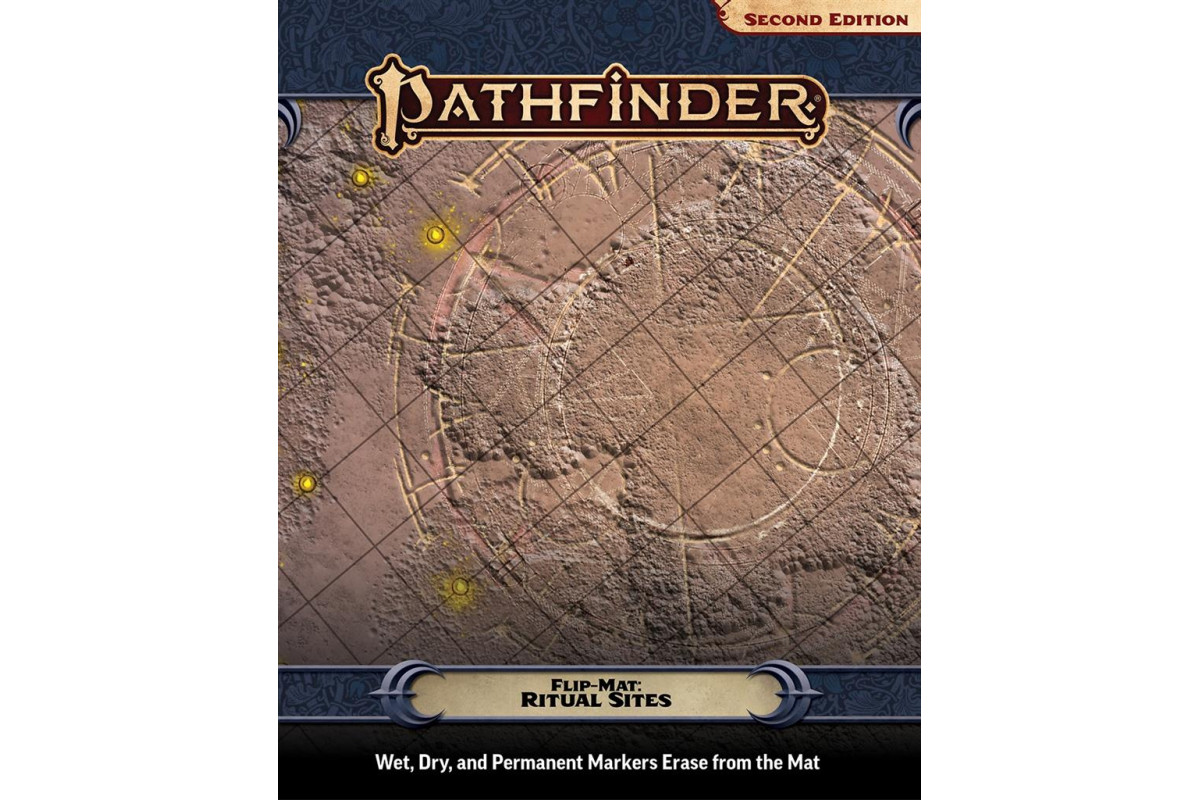 Pathfinder Flip-Mat: Ritual Sites measures 24" x 30" unfolded, and 8" x 10" folded. A Flip-Mat's coated surface can handle any dry erase, wet erase, or even permanent marker. Usable by experienced GMs and novices alike, Pathfinder Flip-Mats fit perfectly into any Game Master's arsenal.