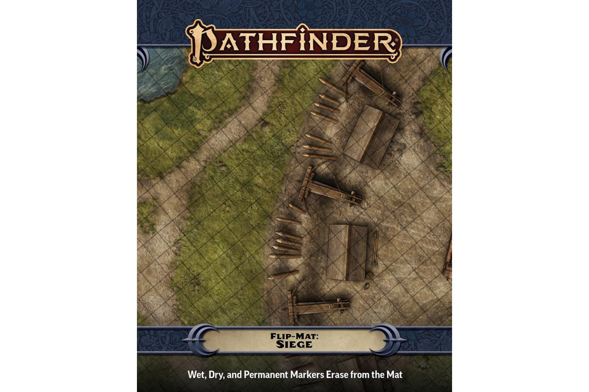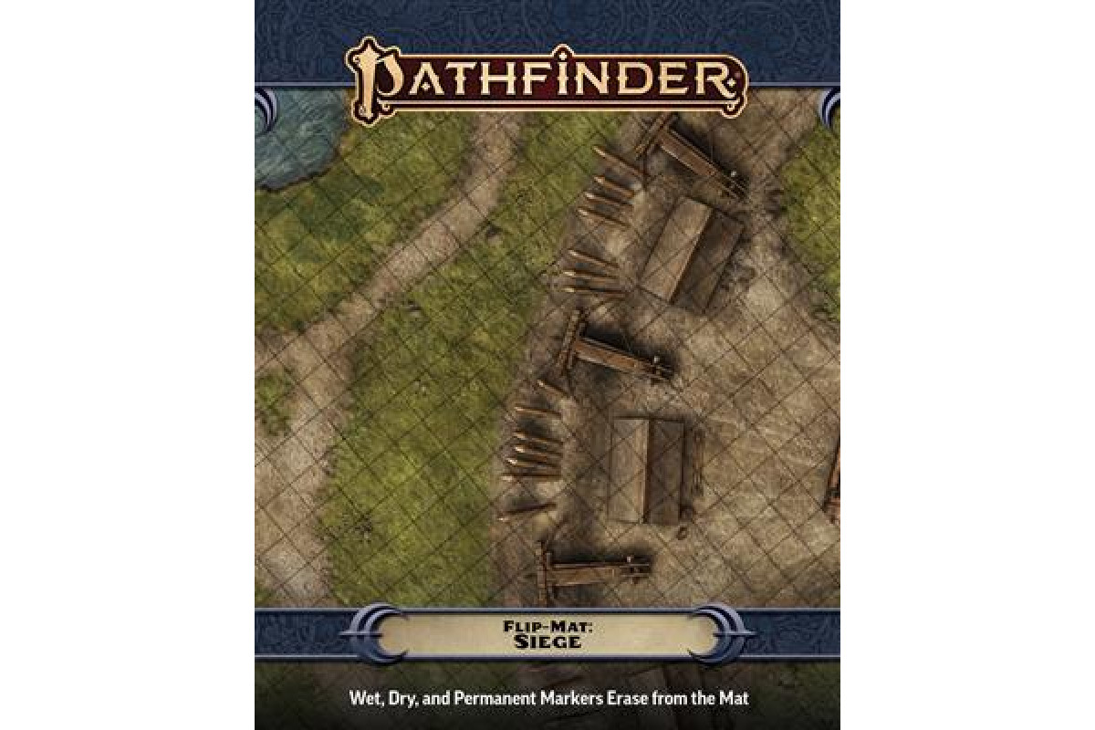 Pathfinder Flip-Mat: Siege measures 24" x 30" unfolded, and 8" x 10" folded. A Flip-Mat's coated surface can handle any dry erase, wet erase, or even permanent marker. Usable by experienced GMs and novices alike, Pathfinder Flip-Mats fit perfectly into any Game Master's arsenal!