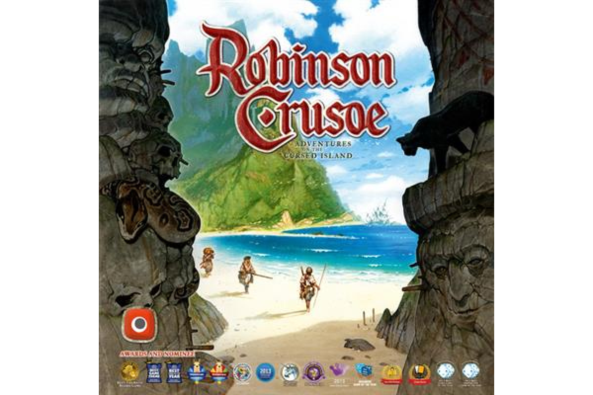 Robinson Crusoe: Adventures on the Cursed Island is a game created by Ignacy Trzewiczek, the author of Stronghold. This time Trzewiczek takes the players to a deserted island, where they'll play the parts of shipwreck survivors confronted by an extraordinary adventure. They'll be faced with the challenges of building a shelter, finding food, fighting wild beasts, and protecting themselves from weather changes. Building walls around their homes, animal domestication, constructing weapons and tools from what they find and much more awaits them on the island. The players decide in which direction the game will unfold and – after several in-game weeks of hard work – how their settlement will look. Will they manage to discover the secret of the island in the meantime? Will they find a pirate treasure, or an abandoned village? Will they discover an underground city or a cursed temple at the bottom of a volcano? Answers to these questions lie in hundreds of event cards and hundreds of object and structure cards that can be used during the game...