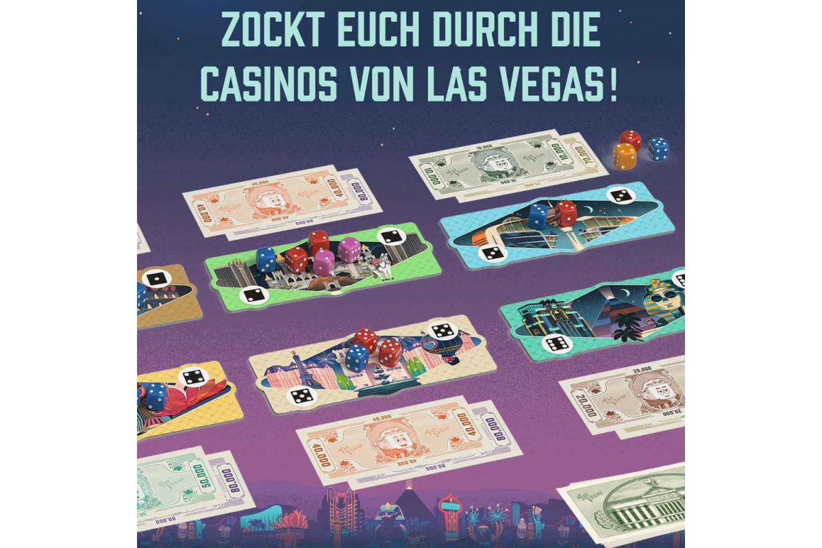 Die 2 - 6 Spieler versuchen ihr Würfelglück in der bunten Glitzerwelt von Las Vegas. Sie besuchen verschiedene Casinos und müssen versuchen, dort möglichst viele Dollars zu scheffeln. Allerdings kommen sich die Glücksritter dabei immer wieder ins Gehege und machen sich gegenseitig die Kohle streitig. So entstehen viele interaktive Situationen, die immer wieder gerne zu Schadenfreude und Unterhaltung sorgen, gerade auch angesichts manchen nicht so geplanten Würfelwurfs.