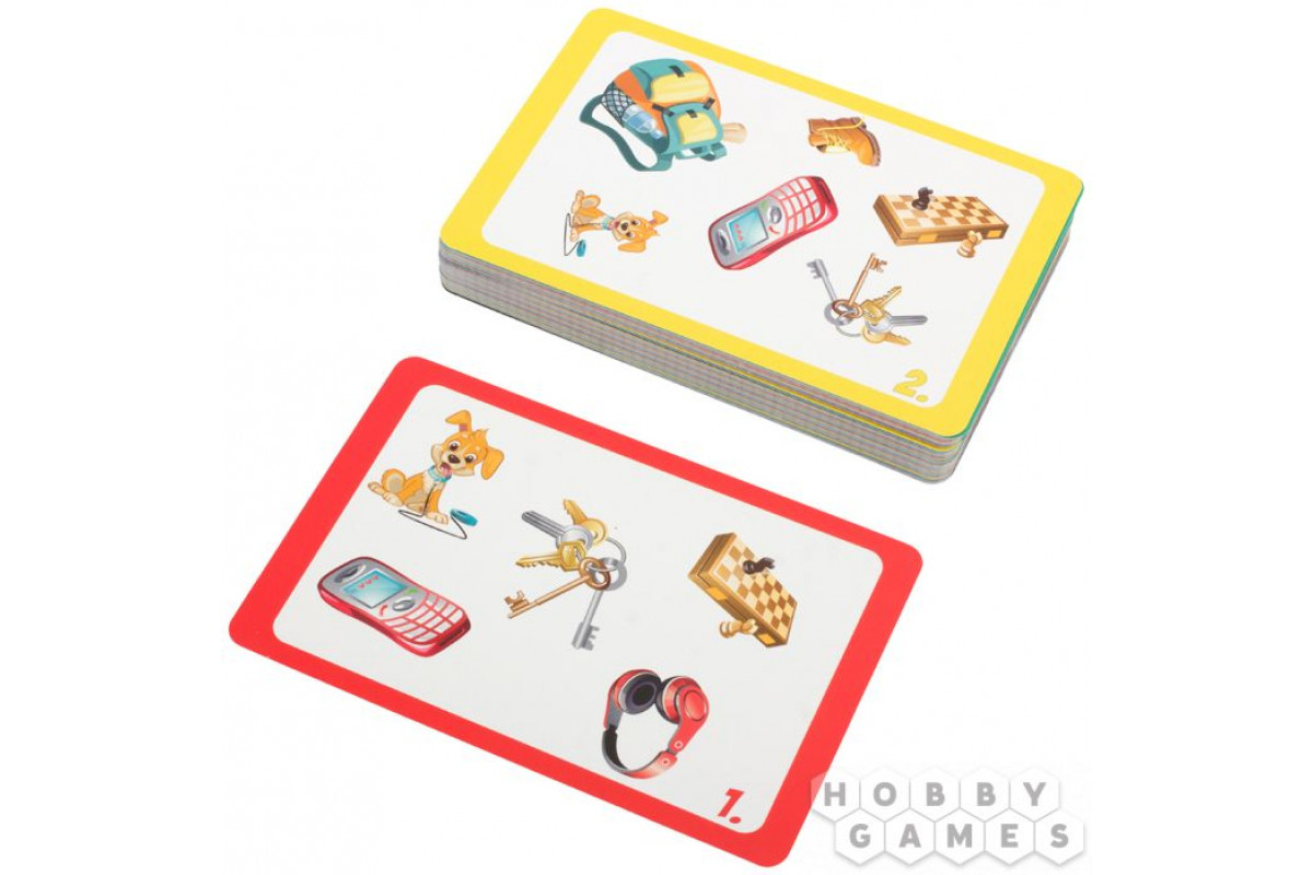 Перемешайте колоду и положите её лицевой стороной вверх. Затем все вместе внимательно изучите предметы на верхней карте – в среднем для этого хватает 10-20 секунд. Как только время закончится, переверните карту. Ваша задача – быстрее всех назвать новый предмет, который появился на обороте. Угадали верно? Забирайте карту в свою коллекцию! Ошиблись? Пропустите следующий ход. Для самых маленьких можно упростить правила, а для опытных игроков есть варианты "Наоборот" (где нужно искать не появившийся, а исчезнувший предмет) или "Всё серьёзно" (побеждает тот, кто соберёт карты с наибольшей суммой очков) – или их увлекательный микс.