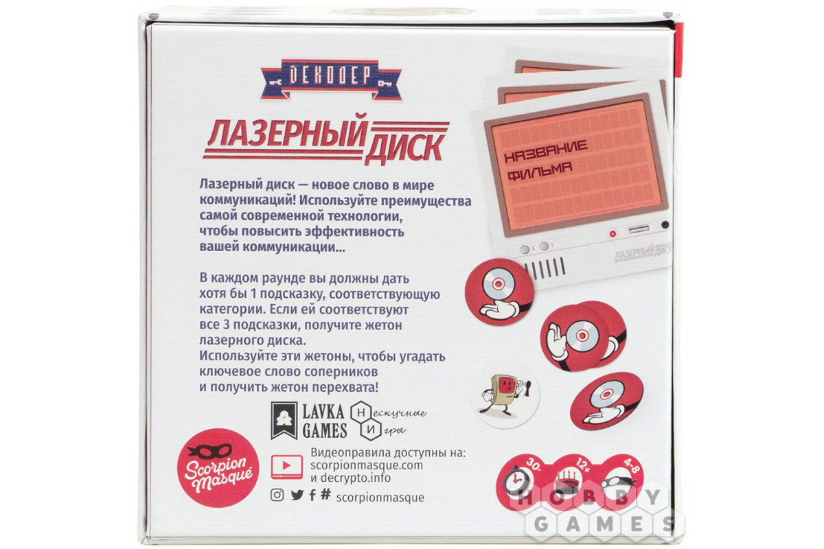 Перед вами "Лазерный диск" – это первое дополнение к настольной вечериночной игре "Декодер", в которой команды игроков отгадывают некие зашифрованные сообщения от соратников, в то же время перехватывая секретные шифры противников.