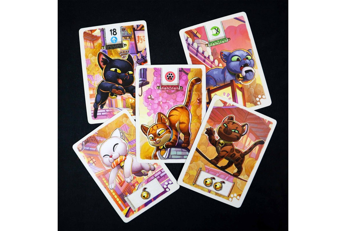 A cat's life may be wonderful, but even the happiest of cats will be curious to know what's hidden behind the walls of their garden! In this game, players take on the role of cats exploring the city. As the deck is explored, the cats will find food, friends and special gifts... But be careful not to stay too late: you might get lost in the streets of Kyoto!