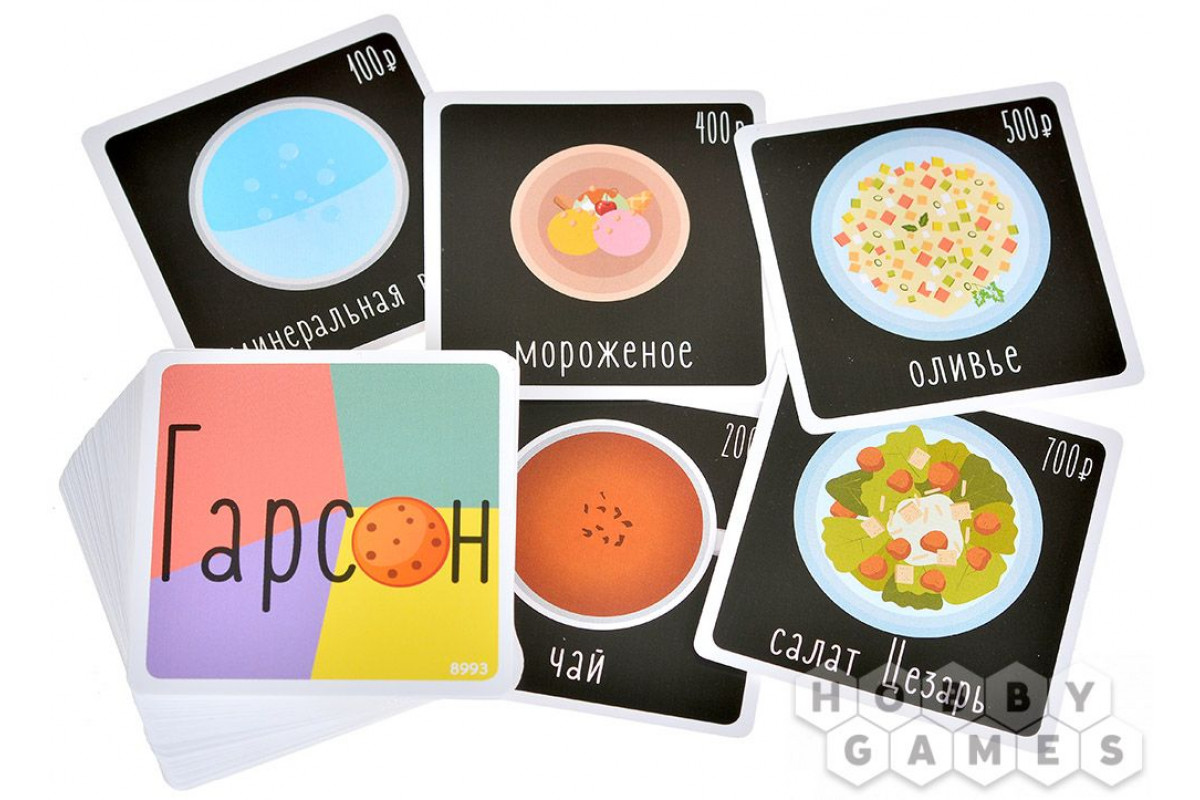 В какой-то момент игры вы (или кто-то из ваших соперников) можете объявить "Гарсон!" – тогда остальные игроки объединятся, чтобы за минуту вспомнить все названные блюда. Если команда справляется, вы получаете штрафную карточку с ценным блюдом (а за него придётся отдать очень много денег!), если нет – стоимость общего заказа делится между забывчивыми посетителями. Думаете, это слишком жестоко? Бывает ещё безжалостнее, ведь вам может попасться карточка повара – она усложнит задачу и заставит вспоминать заказ в одиночку... В общем, помните: ваша память, скорость и умение тактически выбрать момент – залог победы!