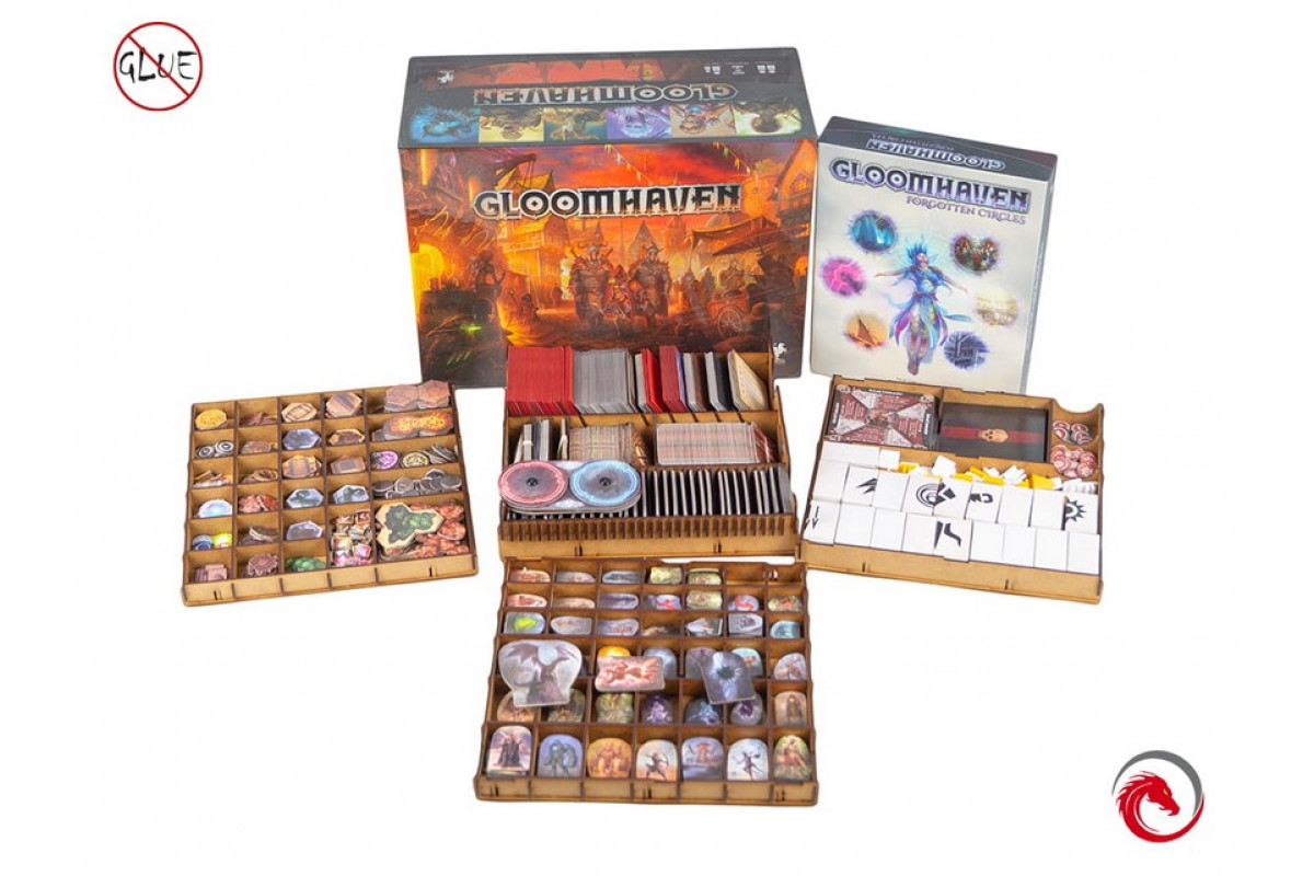 e-Raptor Insert compatible with Gloomhaven + Forgoten Circle (expansion) is a perfect accessory designed to organize and improve gameplay of the board game.