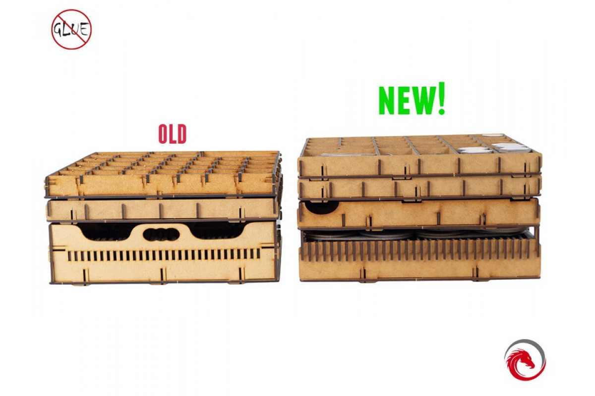 The insert is durable and made of high quality HDF. To assemble it, there is no glue required. It allows to hold all components inside the box, including board, scenario book, map tiles and manual.