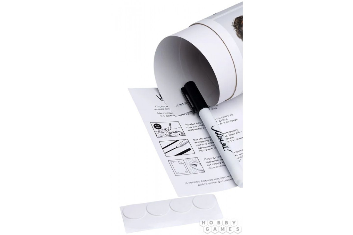 В наборе вы найдёте специальный маркер и прочные стикеры для крепления. Советуем давать рисункам несколько секунд на высыхание, чтобы избежать размазывания. А перед тем как повесить плакат, проверьте стикеры на небольшом участке стены – они очень надёжные, и снять их без следов может быть непросто.