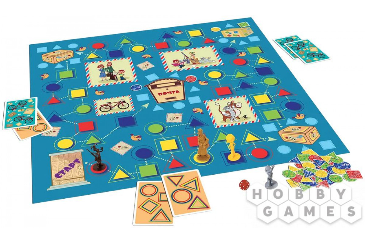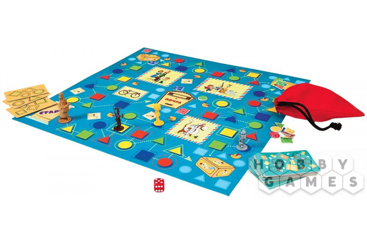 Вы выбираете фигурку любимого героя и перемещаете её по полю, бросая кубик и двигаясь на выпавшее количество шагов. Если фишка останавливается на клетке с фигурой, вам предстоит найти подходящей формы марку в мешочке – только на ощупь. Но любая марка имеет какой-то цвет – и оттого, какой именно цвет попадётся вам, зависят ваши дальнейшие действия. Удалось достать жетон нужной формы и цвета? Заберите его в свой запас. Если цвет не совпал – придётся положить его у "посылки" или "почты", чтобы потом обменять. А вот если не угадали саму форму и достали, например, круг вместо квадрата, жетон и вовсе достанется соседу справа.