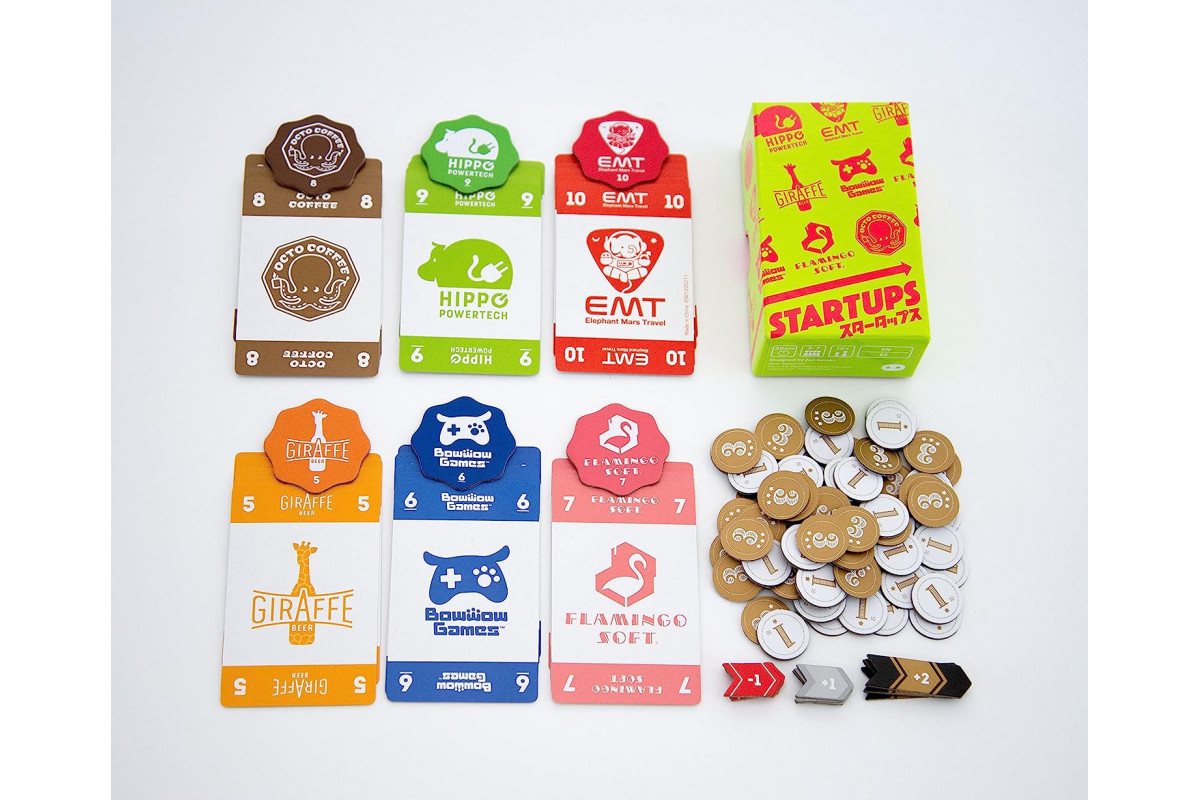 Startups is the updated version of an older Oink Game which came out in 2015 and won the second prize at Game Market Tokyo: Rights. Oink Games upgraded the rules, the design and it is even possible to play with more players now!