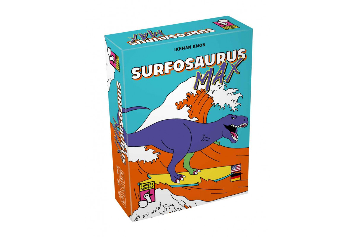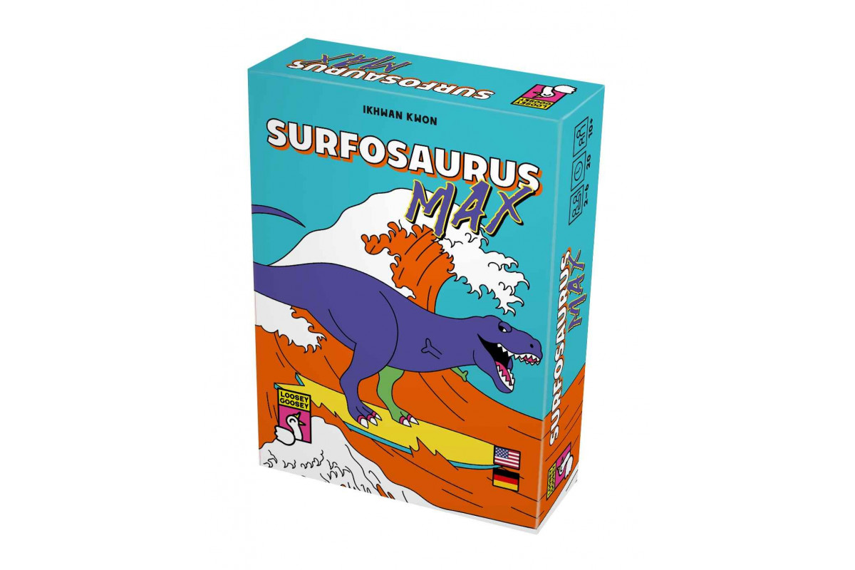 Kartenkombos – miteinander gegeneinander! Surfosaurus MAX spielt ihr mit Karten in sieben Farben, mit Werten von 01 bis 12. Ein hoher Kartenwert bedeutet wenige Punkte und andersherum. Wenn du am Zug bist, spielst du eine Karte aus und ziehst sofort nach. Wenn die richtige Anzahl Karten liegt, gewinnt die eine bestmögliche Karten-Kombo auf dem Tisch, die sich aus allen Karten aller Spieler bilden lässt. Falls auch du dieser Kombo eine Karte beisteuern konntest, bekommst du Punkte.