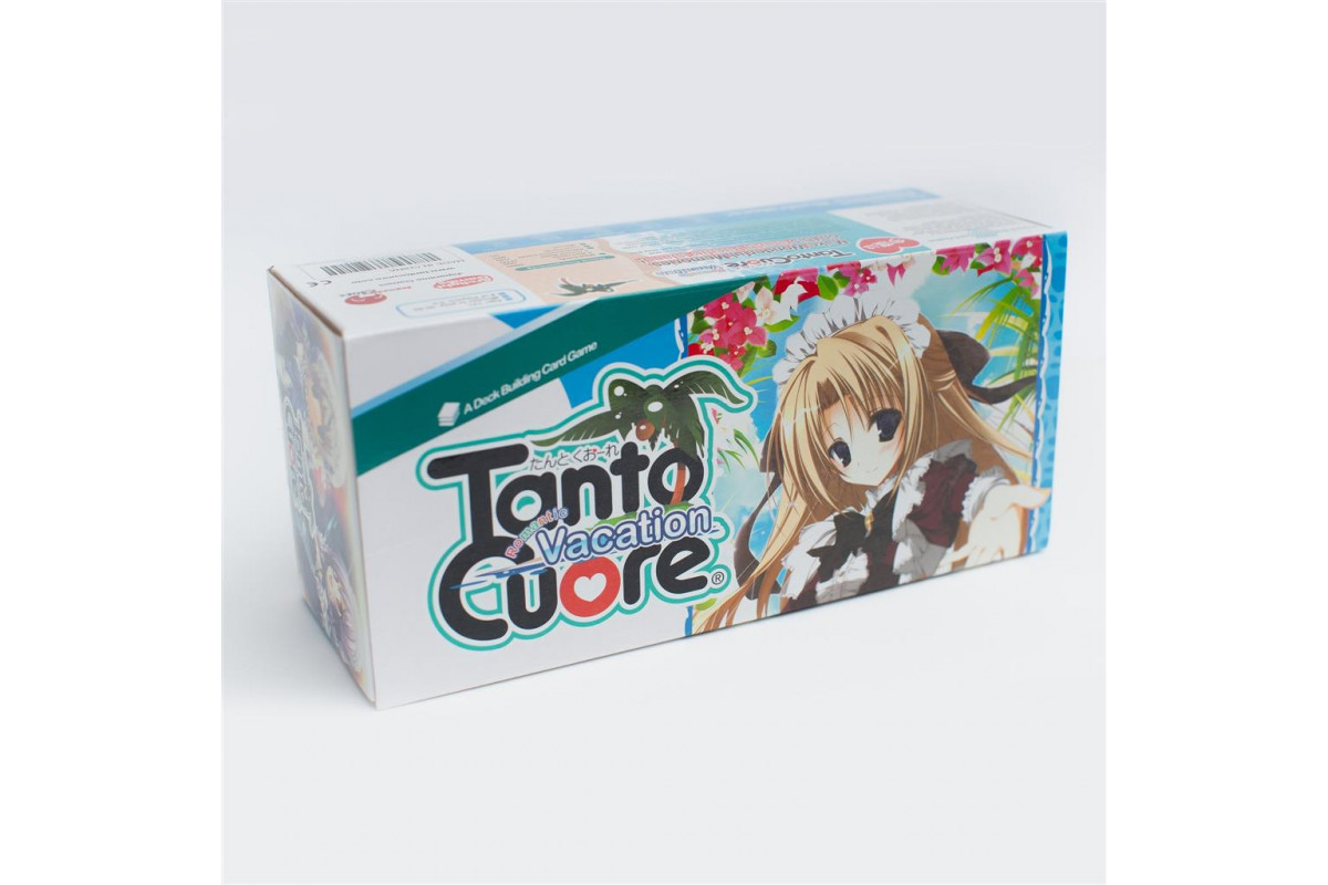 Tanto Cuore: Romantic Vacation, the second expansion for the deck-building game Tanto Cuore in addition to being a standalone game, is themed around a paradise island vacation. ("Dokidoki", the sound of heartbeat in Japanese, means "exciting" or "romantic", which is why the English name is "Romantic Vacation".) Players take the role of house lords and start with a deck containing some love cards and a few maids. During the game, players gradually employ more maids, increasing their deck of cards, and the player who collects the most victory points wins.