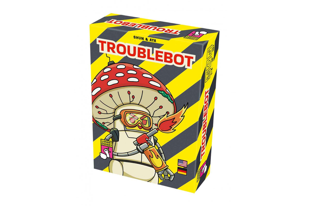 Macht kabot, was euch kabot macht! Troublebot ist ein fieses Kartenspielchen, voller kleiner aber wichtiger Entscheidungen. Wenn du am Zug bist, suchst du dir einen neuen Pilzbot aus und nimmst ihn auf die Hand. Dann spielst du einen deiner zwei Pilzbots und führst seine Aktion aus. Die meisten Effekte helfen tatsächlich dir und deinen Setzlingen. Aber es gibt auch Aktionen, die den anderen Spielern Trouble bereiten. Hast du am Ende die wertvollsten Setzlinge, gewinnst du.