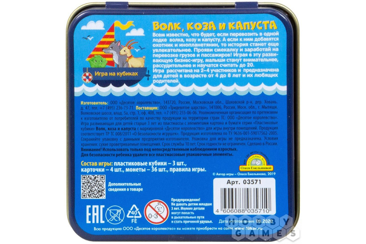 Загадкой про переправу волка, козы и капусты с одного берега на другой уже никого не удивить. Кто-то разгадал её самостоятельно, кому-то подсказали. Но так или иначе ответ на неё знают практически все. А что, если в эту знакомую формулу добавить охотника? А если инопланетянина? Да ещё и платить по рублю за переправу? Получится настольная бизнес-игра для детей "Волк, коза и капуста"!