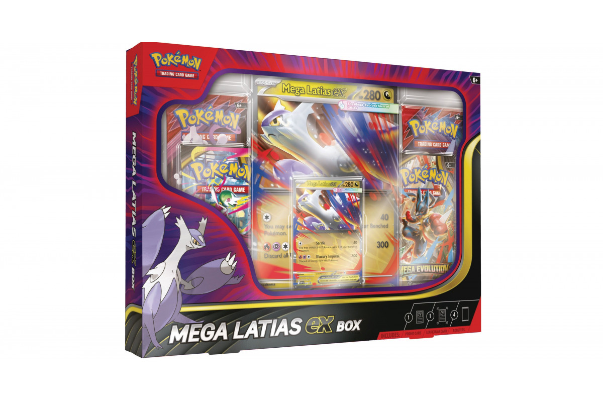 Mega Evolution takes the power of the Legendary Pokémon Latias past its limit! With awesome speed, it surges through the sky with draconic might. Now you can team up with Mega Latias ex as a playable foil promo card, plus an oversize lenticular card with amazing artwork. You also get four booster packs with even more Pokémon inside!