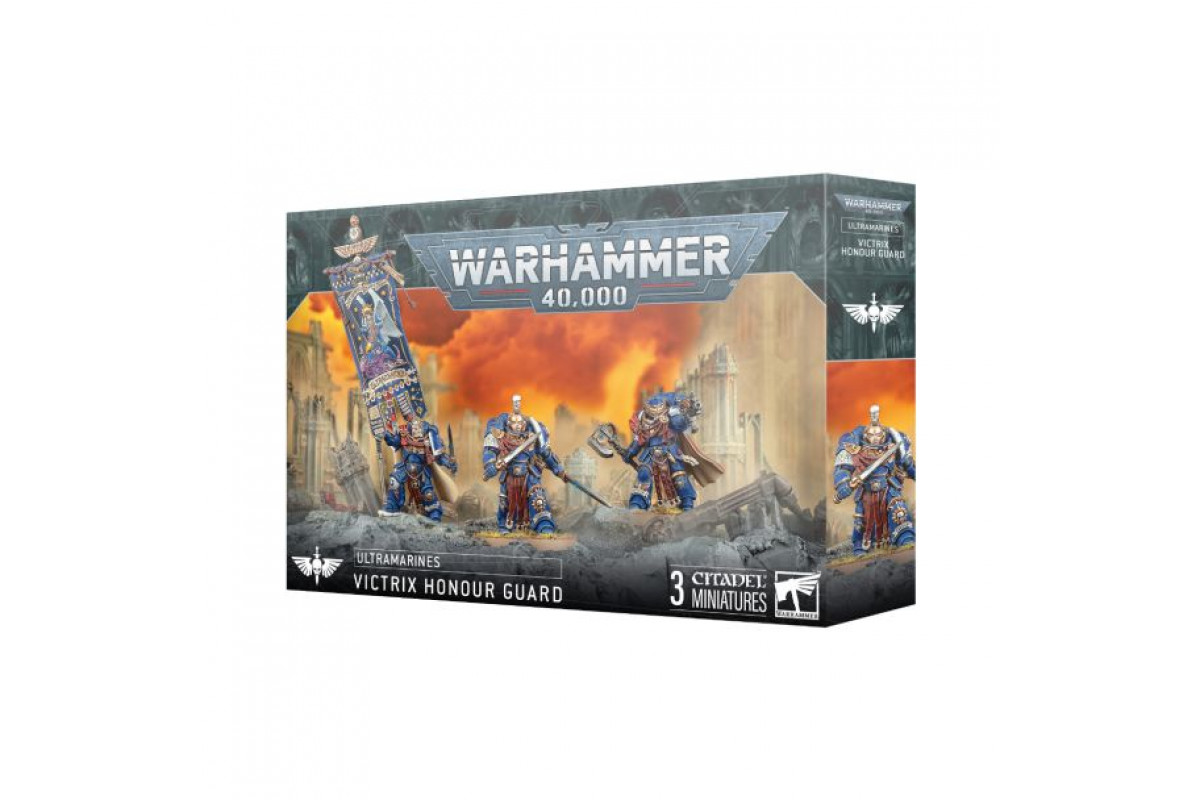 This multipart plastic kit builds three Victrix Honour Guard, elite Space Marine bodyguards for your Ultramarines armies in games of Warhammer 40,000. These powerful and durable warriors will ensure your key leaders remain effective for as long as possible, while also increasing the damage output of your force. This highly customisable kit includes interchangeable leg armour, shoulder pads, master-crafted bolt carbines, power axes, and six helmeted heads. One can alternatively be built as a Chapter Champion, armed with Blades of Honour, and another can be built as a Chapter Ancient, carrying a master-crafted power weapon and the inspiring Banner of Macragge.