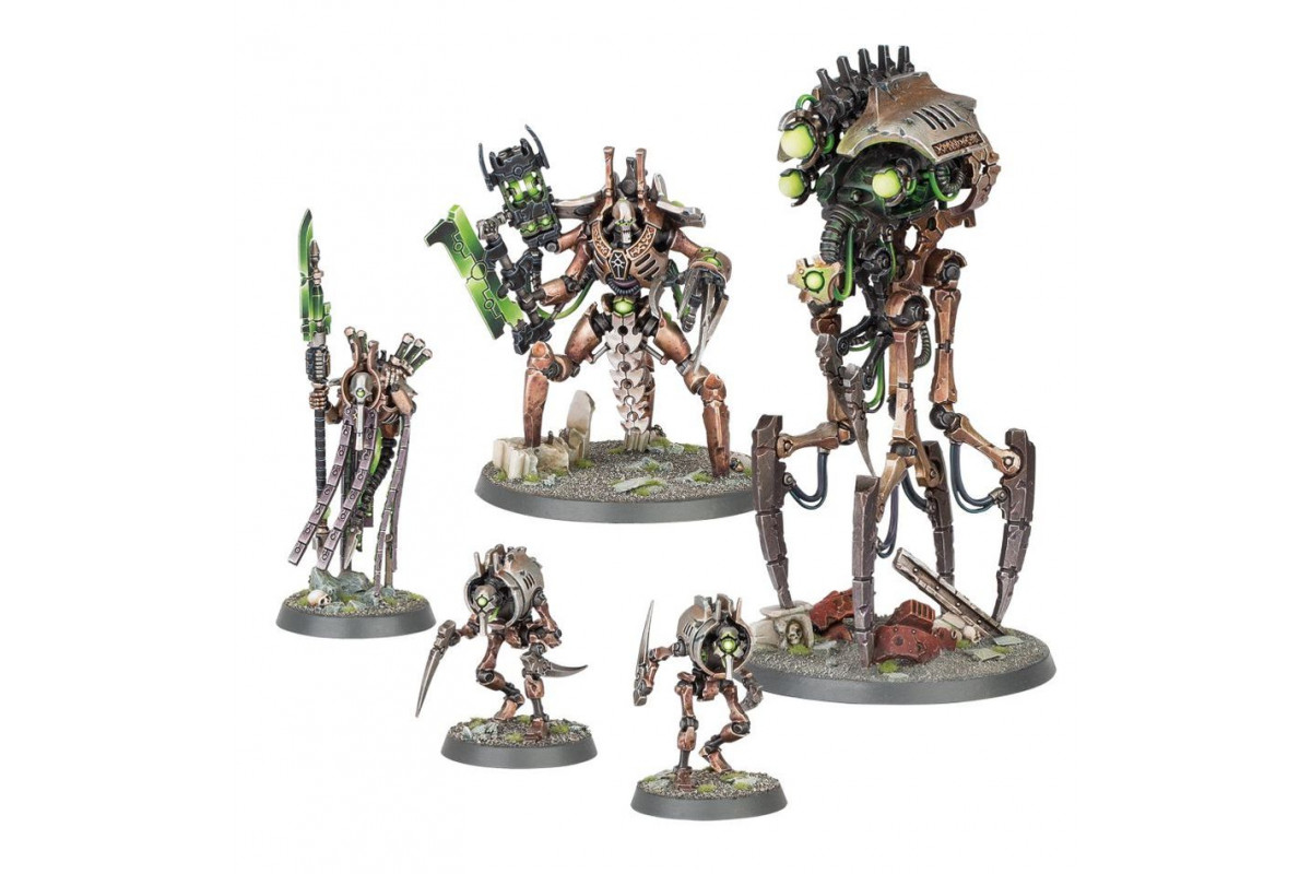 This set provides you with reinforcements for your Necrons collection. A Skorpekh Lord can lead your force from the front, powerful weapons bringing ruin to your enemies. At his side, a Plasmancer can channel raw energy into searing blasts of firepower, while enslaved Cryptothralls protect their Cryptek master. Should any of them be damaged by impertinent foes, the towering Canoptek Reanimator can repair them, ready to battle on in the name of the Silent King.
