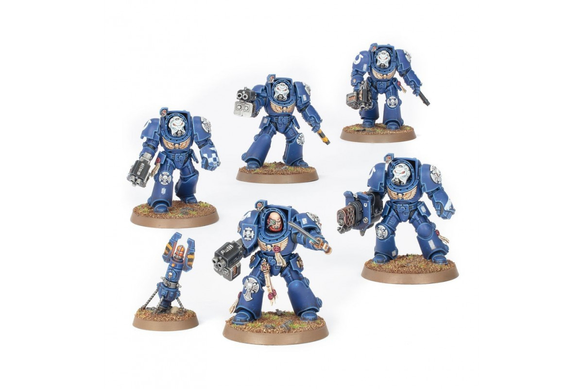 This packed boxed set is ideal for starting a new Space Marines collection – or expanding an existing army – to unleash in games of Warhammer 40,000, and you'll save money compared to buying the kits individually. Led by a versatile Captain, a grim Chaplain, and a stoic Ancient – all in Terminator armour and prepared to get stuck in with the rest of this aggressive force. The core of the force is composed of 10 Assault Terminators, found in this box for the first time, an almost unstoppable cohort of melee specialists. Supporting the army are five standard Terminators, bringing with them both melee capability and massive amounts of suppressing firepower, ideal for holding objectives.