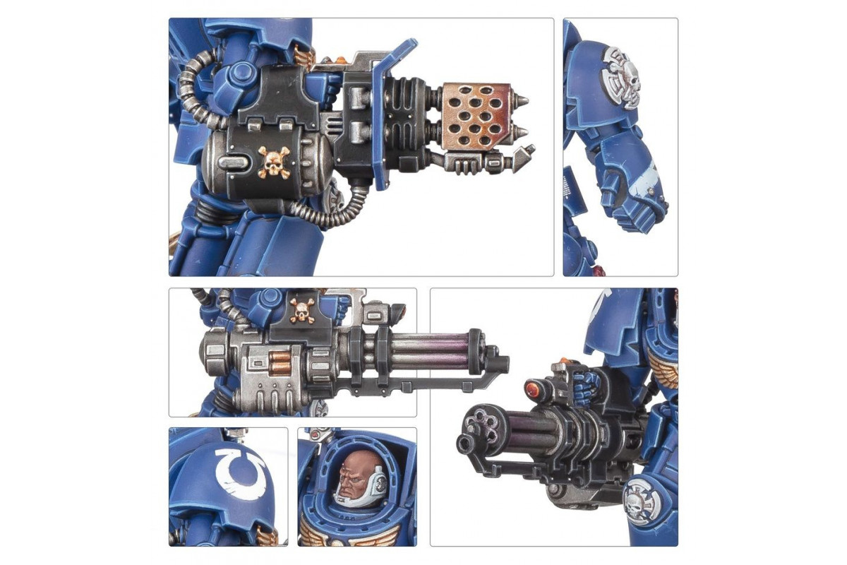 The Terminator Squad members are each armed with storm bolters and either power fists or chainfists. One can alternatively take a heavy flamer, assault cannon, or cyclone missile launcher, and there are parts to build an optional Sergeant.