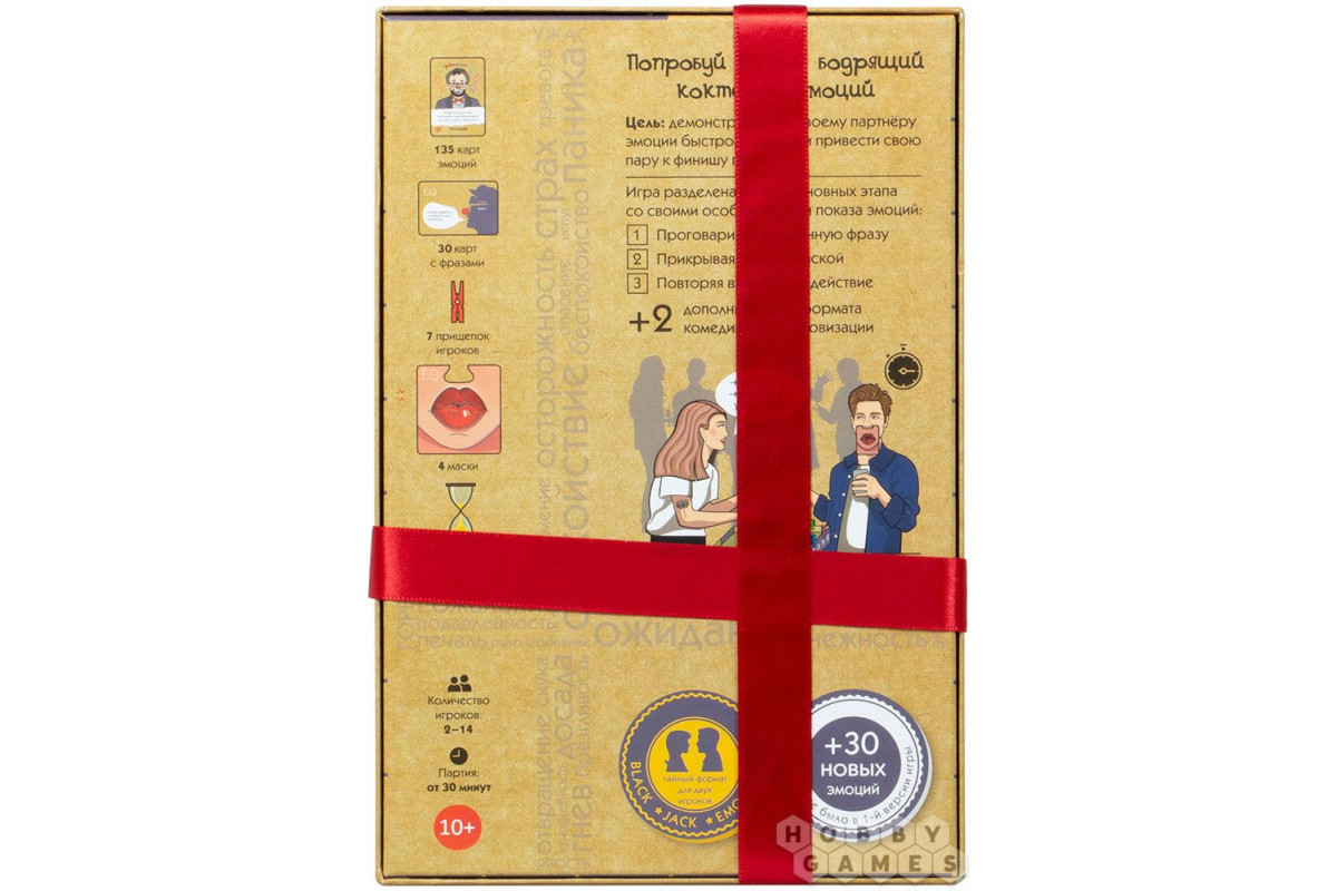 Эмоции изображены на 135 картах, и игроки угадывают их с помощью голосования. В простом и занимательном процессе игры вы не только прокачаете свой эмоциональный интеллект, но и научитесь слушать и слышать других людей, а, возможно, даже получите способность "видеть их насквозь".
