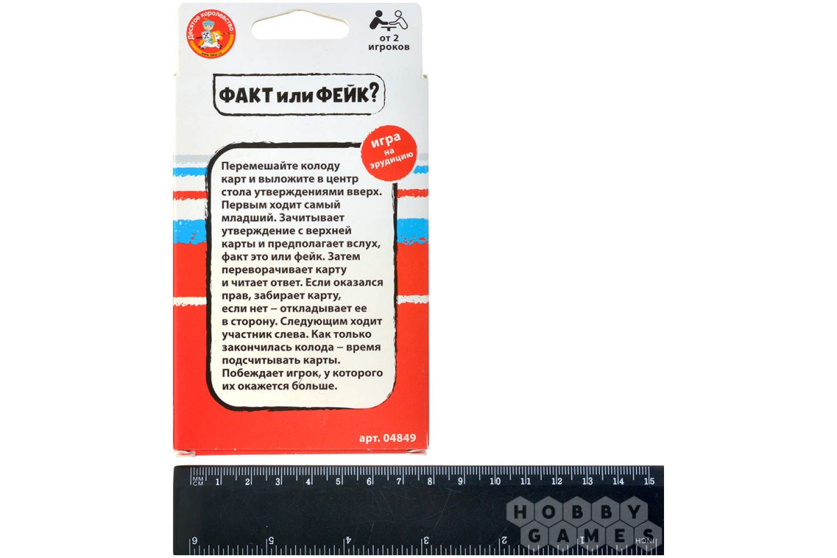 Правила просты: перемешайте колоду карт, положите в центр стола фактами вверх, зачитайте факт на первой карте и ответьте – правда это или фейк. Переверните карту, чтобы проверить свой ответ. Угадали – карта ваша, а если нет, то уберите карту в сторону. Победит игрок, набравший больше всех карт.