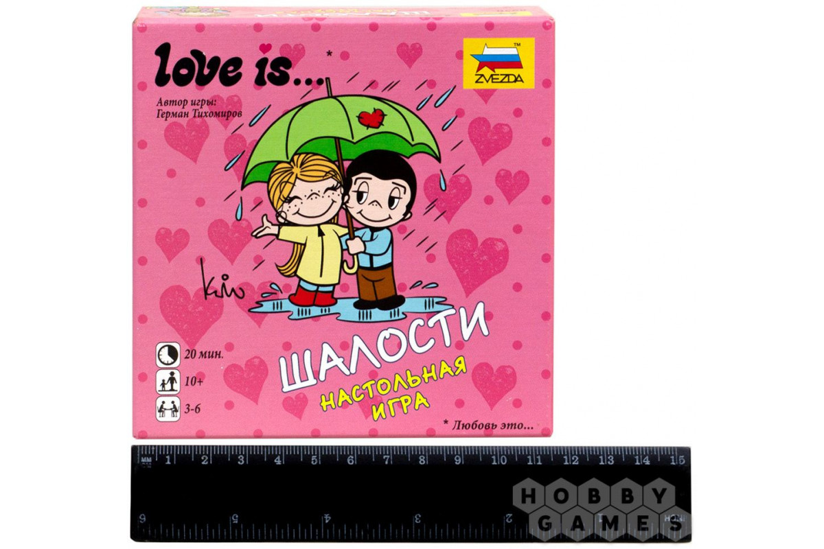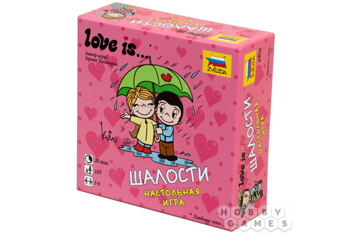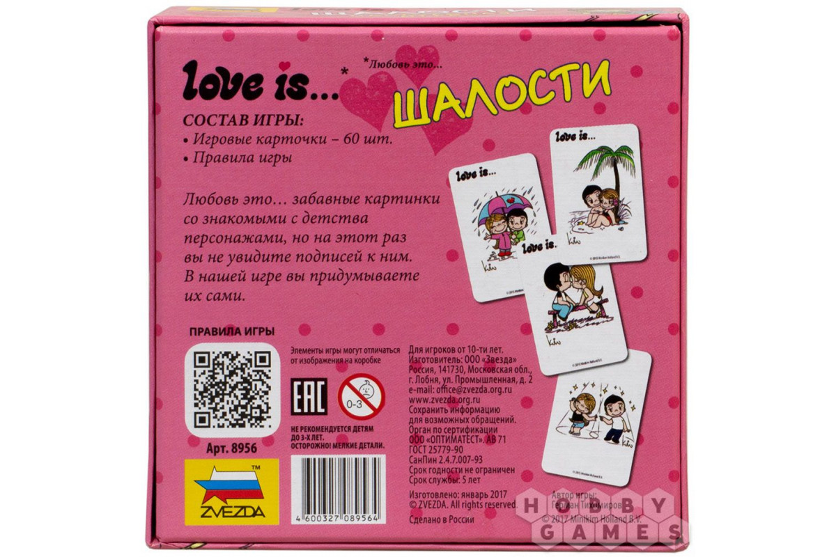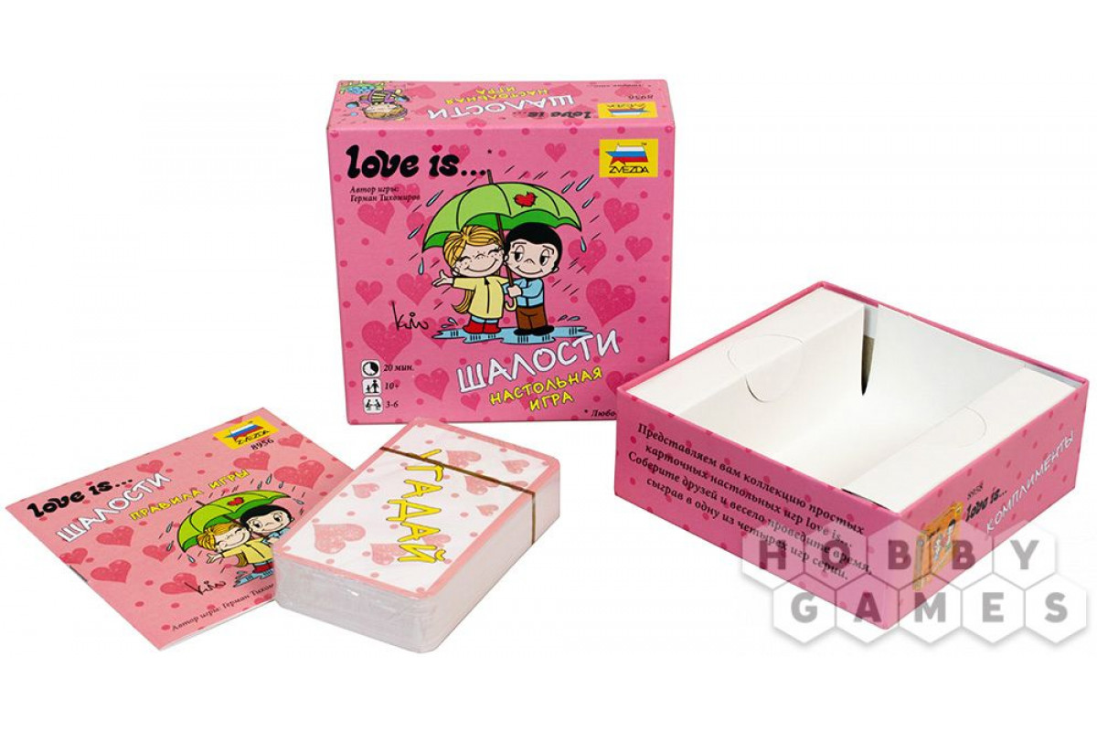 В настольной игре "Love is... Шалости" одному игроку предстоит придумывать подписи к картинкам на карточках, а затем рассказать об этом другому, который в свою очередь должен жестами изобразить загаданное.