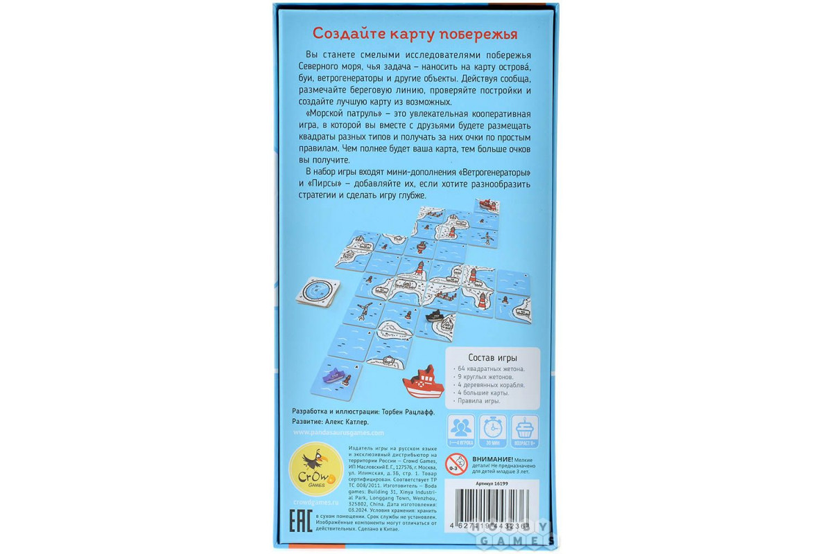 В кооперативной игре "Морской патруль" вы станете капитанами береговой охраны, слаженно исследующими акваторию. Начиная с одного квадрата карты, вы будете постепенно выкладывать новые тайлы, расширяя зону патрулирования и соединяя их со всех сторон, чтобы отметить как исследованные. Простые правила – размещение плиток и перемещение кораблей – скрывают глубокую стратегию: нужно эффективно распределять ограниченные ресурсы и действовать сообща с партнёрами. Два встроенных мини-дополнения добавляют вариативности, делая каждую партию уникальной. Это идеальный выбор для тех, кто любит спокойные, но увлекательные командные игры, где победа зависит не от удачи, а от слаженности и продуманных решений.