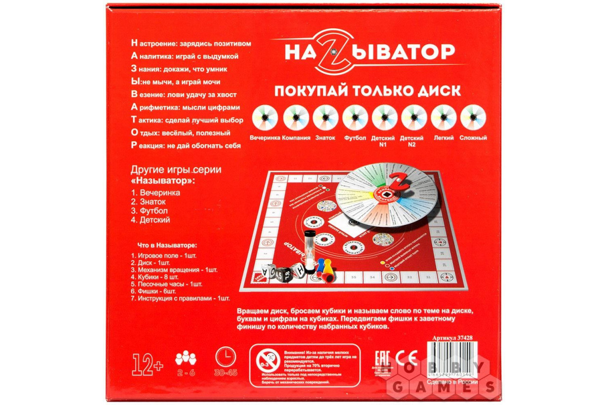 Настольная игра "Называтор" обеспечит Вашу вечеринку весёлым и шумным времяпрепровождением. Бросаем кубики, крутим двухсторонний диск с вопросами и включаем находчивость и сообразительность на полную катушку, стремясь опередить соперников. Вопросы будут попадаться самые обычные, понятные всем, но, несмотря на это, далеко не каждый сможет вот так, сходу придумать нужное слово, учитывая выпавшие буквы на кубиках. Назовите, например, "изделие из дерева", начинающееся на определённую букву, или же конкретной длины! После недолгих раздумий слово всё-таки нашлось, но, увы, кто-то забрал кубик с нужной буквой. Значит, придётся подбирать новый ответ, учитывая, что сложность раунда повышается с каждым названным словом.