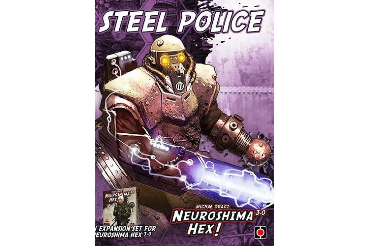 The Steel Police – one of the symbols of Neuroshima world – now enters the universe of Neuroshima Hex... Neuroshima Hex Steel Police is the first army pack, part of a series of mini game expansions containing one Neuroshima Hex army. The army's author in none other than the game's author – Michał Oracz. The Steel Police army pack introduces a new ability in a Neuroshima Hex line. It is called Reflection. Reflection protects the army unit from all attacks directed at its side marked with Reflection icon. Such attack is reflected in the opposite direction for a distance of one field and hits an enemy tile (Unit, HQ or Module) if it stands on an adjacent field on the line of attack. Reflected attack doesn't harm Steel Police tiles.