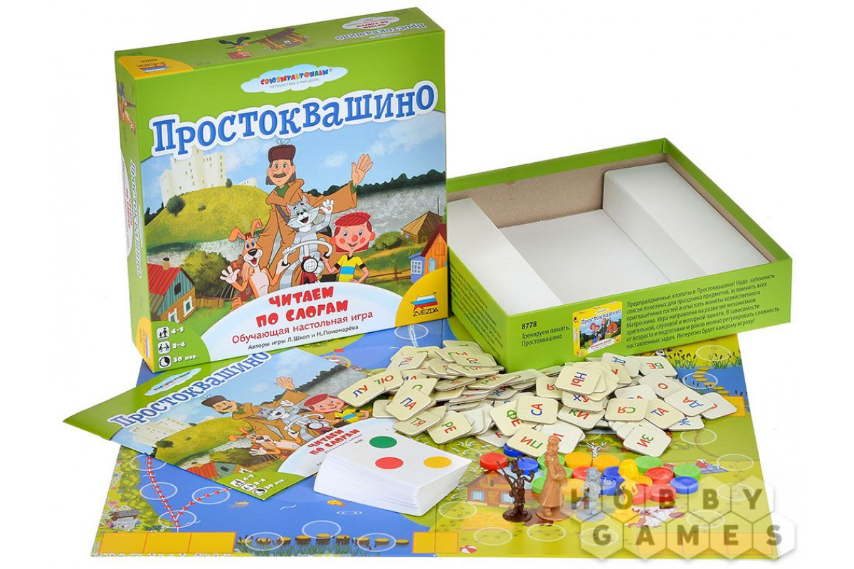 "Простоквашино: Читаем по слогам" – это обучающая настольная игра с любимыми героями, которая помогает детям освоить основы слоговой структуры слова. Задания в игре направлены на развитие речи, внимания и логики, а карточки знакомят с предметами быта, растениями и домашней техникой. В игру встроена система подсказок для взрослых, а сложность можно легко регулировать – благодаря этому она подойдёт как младшим школьникам, так и детям, которые только начинают учиться читать.