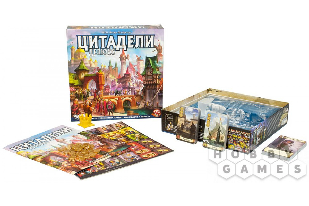 "Цитадели" – это всемирно известная настольная игра Бруно Файдутти, увидевшая свет в далёком 2000 году и переведённая на данный момент уже на 25 языков. В целом, игру можно описать как карточную градостроительную настольную игру, но на самом деле "Цитадели" абсолютно уникальны и сочетают в себе сразу несколько жанров, включая психологическую игру. По ходу партии игроки получают золото, выбирают себе на руку карты кварталов, а затем могут производить застройку, покупая эти самые кварталы за золото. Цель игры – построить самый престижный, то есть самый дорогой город.