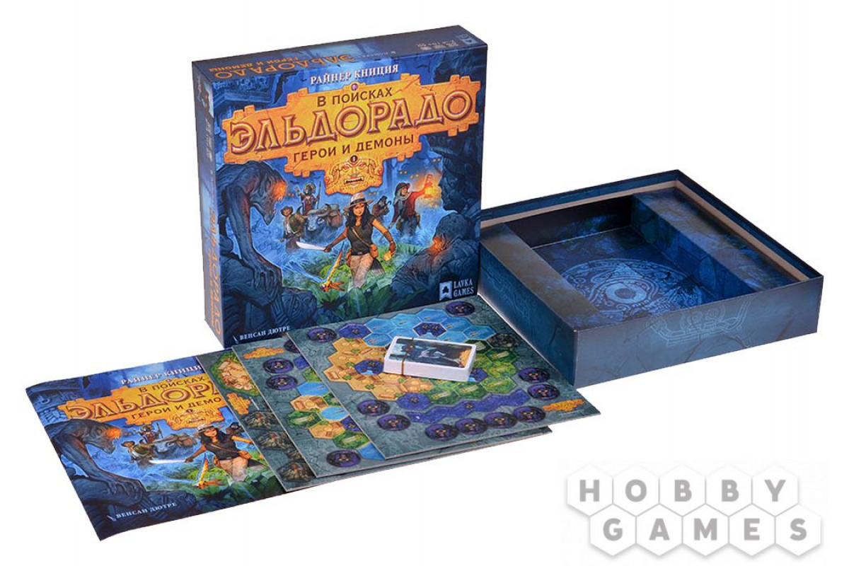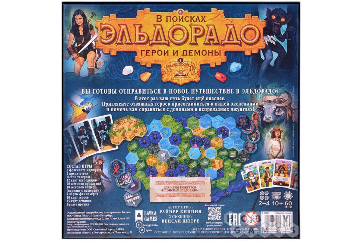 "Герои и демоны" – это дополнение для настольной приключенческой игры "В поисках Эльдорадо", в которой вы отправляетесь в опасное путешествие по южноамериканским джунглям на поиски затерянных сокровищ. В дополнении вас ожидают новые компаньоны, которые будут помогать на протяжении вашего пути, а также новые приключения, в которых вас поджидают такие же новые опасности. Стартовые фамильяры, входящие в набор дополнения, дадут вам неплохие бонусы в начале пути. В таверне можно будет нанять героев, томящихся там в ожидании работёнки. А на пути вас подстерегают опасные проклятия... Будьте внимательны на пути и доберитесь первым до скрытых сокровищ!