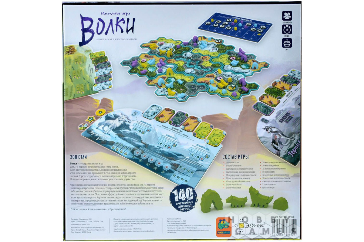 "Волки" – это стратегическая настольная игра о волчьих стаях, борющихся за лесные территории. Игроки возьмут на себя роли вожаков, которые будут управлять стаей. Конечной целью игры является доминирование над другими стаями, но добиться её будет не так просто. Вряд ли у вас получится одолеть дисциплинированную стаю противника парой хилых шакалов, поэтому киньте зов и примите в стаю одиноких волков. Больше ртов – больше пищи требуется: добывайте дичь, чтобы прокормить стаю. А чтобы чужие волки знали, кому принадлежит территория, не забывайте обустраивать лёжки (они ещё и победные очки вам принесут).