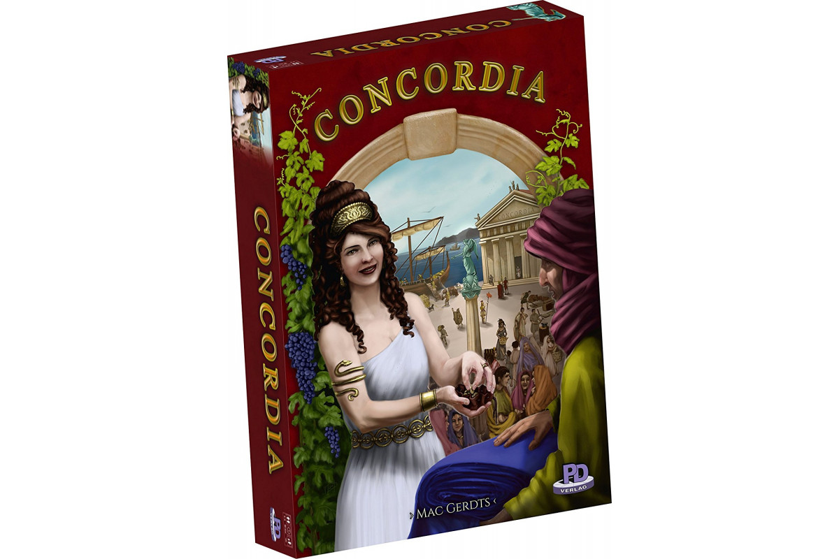 2,000 years ago, the Roman Empire ruled the lands around the Mediterranean Sea. With peace at the borders, harmony inside the provinces, uniform law, and a common currency, the economy thrived and gave rise to mighty Roman dynasties as they expanded throughout the numerous cities. Guide one of these dynasties and send colonists to the remote realms of the Empire; develop your trade network; and appease the ancient gods for their favor - all to gain the chance to emerge victorious! Concordia is a peaceful strategy game of economic development in Roman times for 2 to 5 players age 13 and up. Instead of luck of dice or cards, players must rely on their strategic abilities. Be sure to watch your rivals to determine which goals they are pursuing and where you can outpace them!