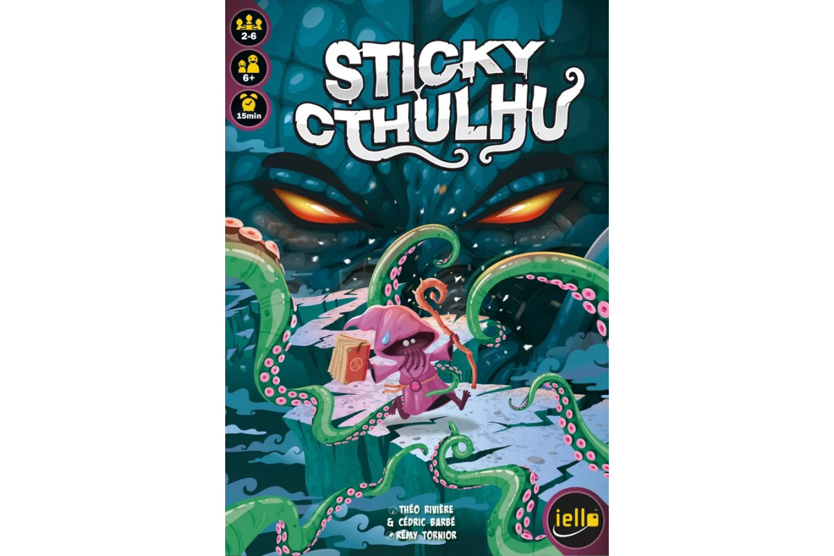 In Sticky Cthulhu, each player has a long sticky "tentacle", and the table is covered with six types of creature tiles in six colors, along with a few investigator tokens.