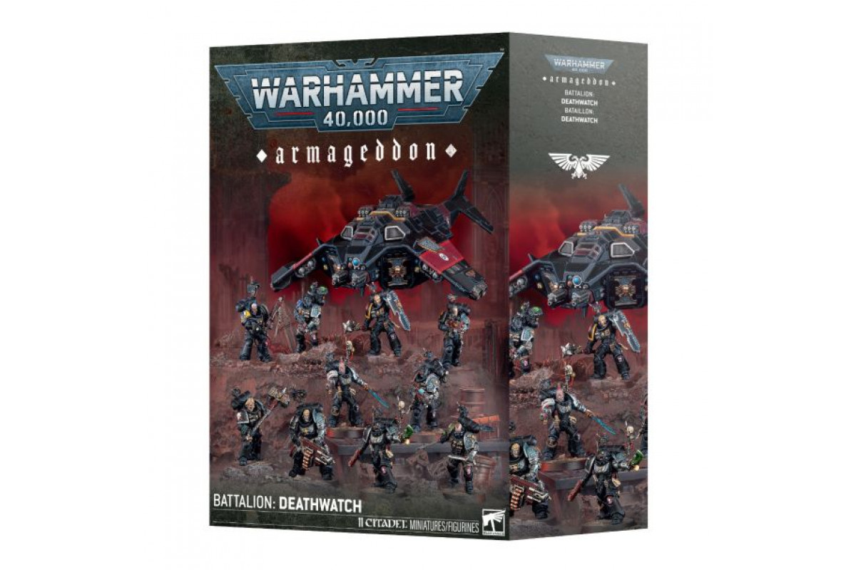 Who better to take on all of the Orks on Armageddon than the alien-hunting specialists of the Deathwatch? This boxed set contains 10 Deathwatch Veterans, each of whom has a selection of weapons and equipment to take on the very worst that xenos can throw at them. They swoop into battle in the hold of a stealthy Corvus Blackstar that can swap its assault cannons for lascannons and its stormstrike missile launchers with a pair of Blackstar rocket launchers.