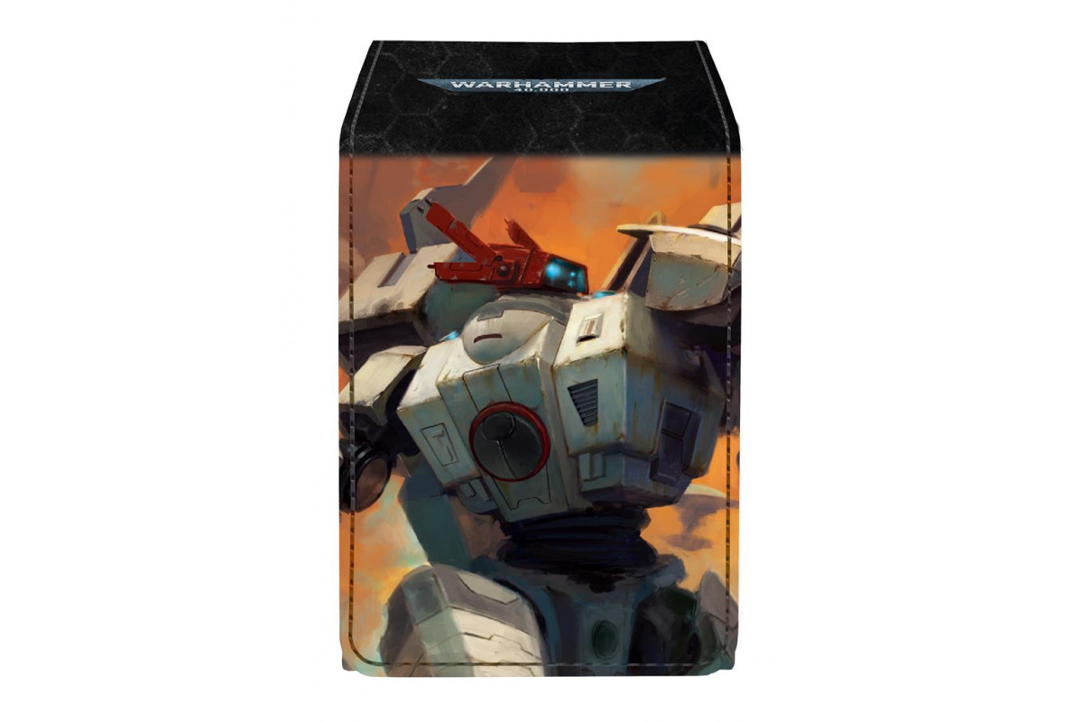 In the grim darkness of the far future there is only war, so prepare for battle with tabletop accessories for Warhammer 40,000! This premium Alcove Flip Deck Box® features vibrant, full-color cover artwork from the 10th Edition T'au Empire Codex on a leatherette finish. The strong magnetic closure keeps your cards secure inside, and dual thumb notches offer easy access to your deck. Store and protect up to 100 standard size trading cards double-sleeved in Ultra PRO Deck Protector® sleeves. Lid can be detached from either side of the box for easy access to your deck.