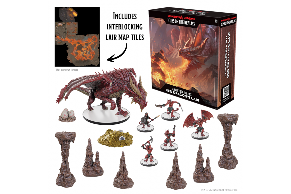 The red dragon surveys its domain from up high in its mountain lair. A fiery, winged tyrant that plunders and destroys all before it on its path to enrich its hoard. Will the menace continue to rampage unabated, or will a group of brave adventurers successfully slay the foul beast? Find out with D&D Icons of the Realms: Adventure in a Box - Red Dragon's Lair!
