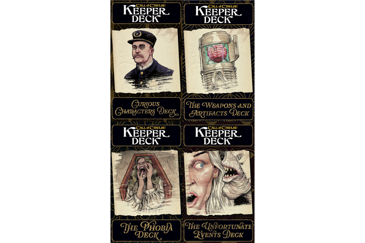 Call of Cthulhu Keeper Decks are designed to provide in game resources, handy references, and information. Use these decks to supplement scenarios, for inspiration when designing new encounters, to pass secret and important notes to players, and as a handy way to impart information. This Second Edition brings you all new artwork as well as some errata updates.