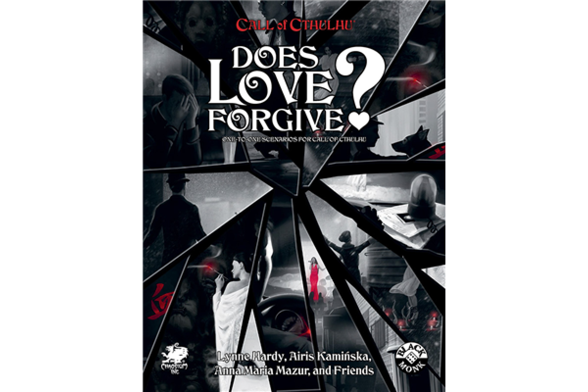 Does Love Forgive? is a collection of two special scenarios for Call of Cthulhu for one Keeper and one player. Both adventures are perfect for a fun evening of gaming for two people. Each scenario can be played over the course of one to two sessions, and is suitable for Keepers of all experience levels.